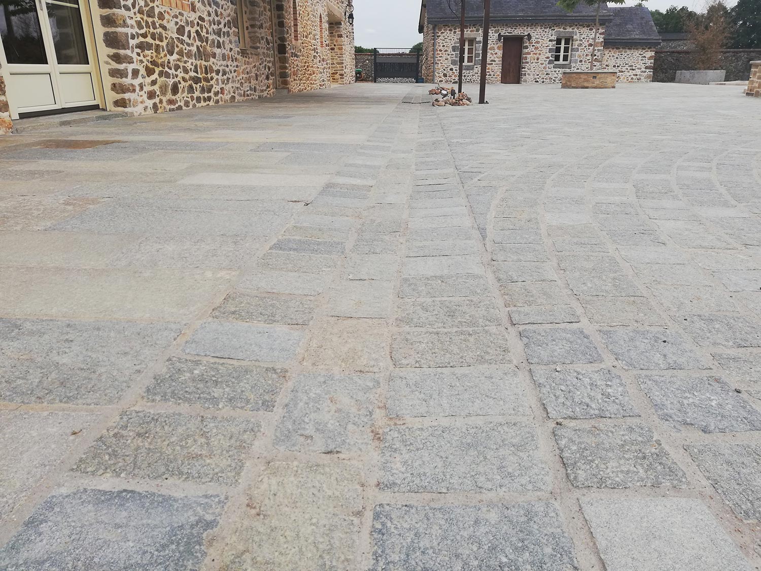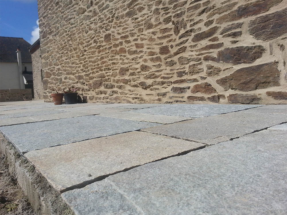 Pierre naturelle extrêmement résistante, avec un caractère fort, très proche esthétiquement de la pierre de Saint-Cast. Elle s’adapte très bien avec les manoirs et les bâtisses de la région bretonne.